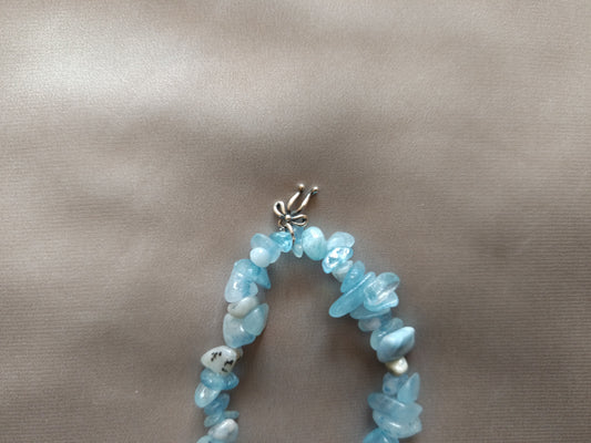 Aquamarine Double Wrap Bracelet with Herbal Incense Beads and Sterling Silver charm