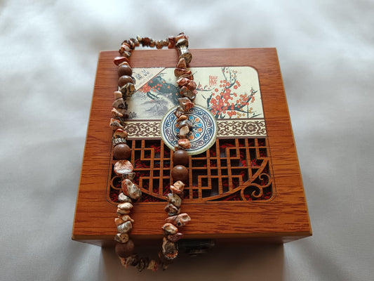 Leopard Print Jasper Double Wrap Bracelet/Choker with Osmanthus Incense Beads and Sterling Silver Jasper