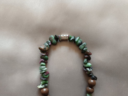 Ruby Zoisite Double Wrap Bracelet/Choker with Six-Character Mantra Sterling Silver Charm