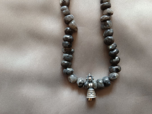 Labradorite double wrap bracelet with Dream Fairy Incense Beads and Sterling Silver lucky Bell Charm